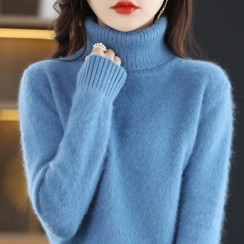 Slmimi Autumn and winter new sweaters ladies thick 100% pure mink velvet solid color high collar long sleeve fashion split sweater
