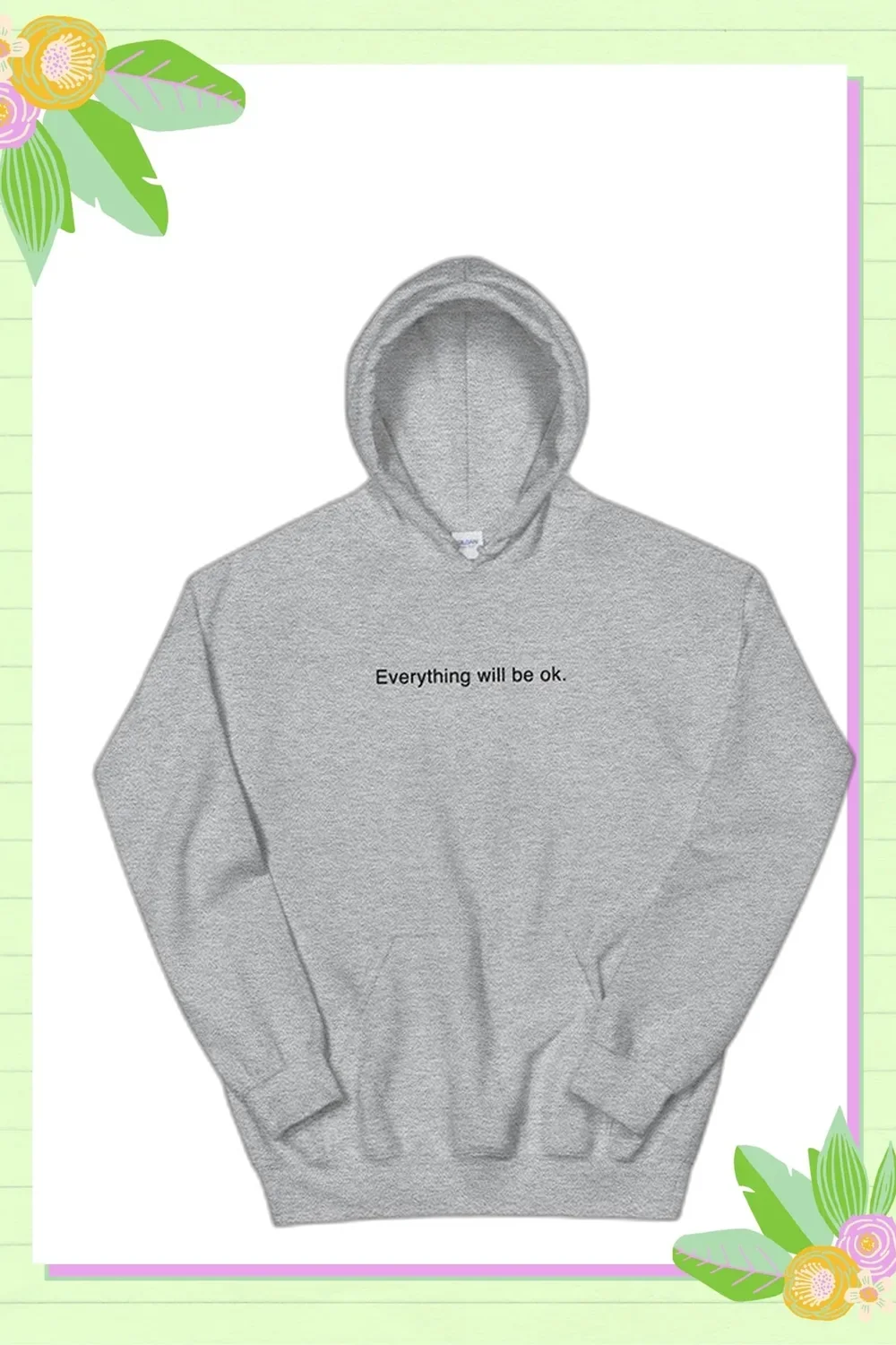 Everything Will Be Ok Mental Health Women Hoodie Long Sleeve Tumblr Hoody Black Casual Tops Unisex Hipster Autumn 90s Clothing