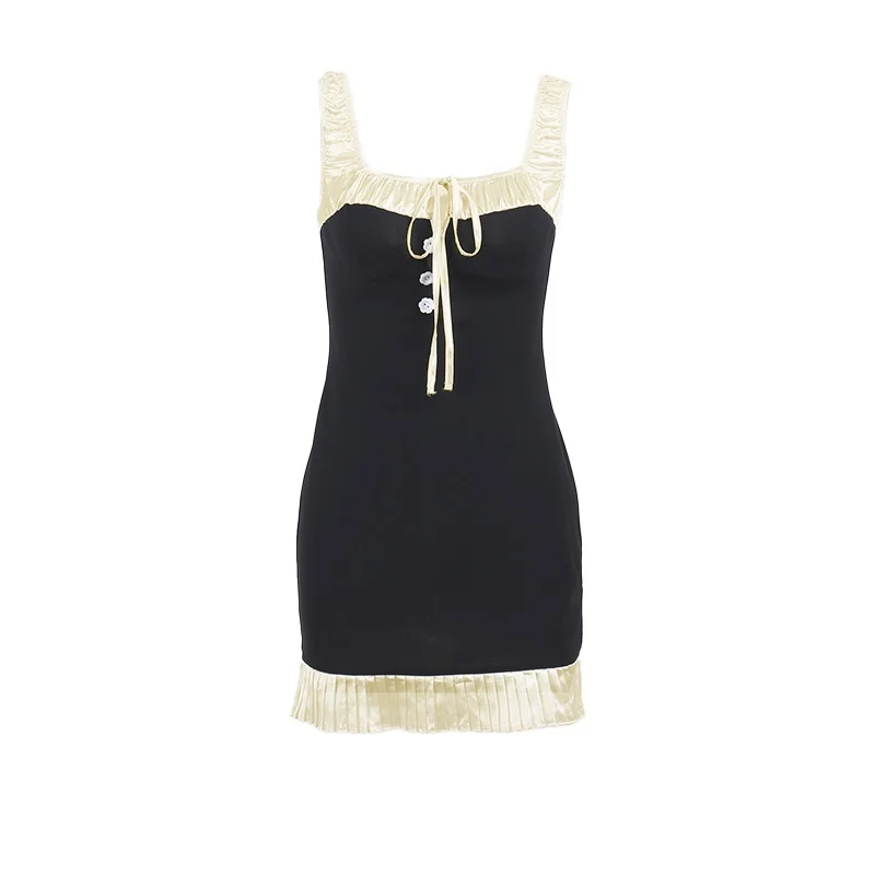 Cgacest Women's Elegant Directional Design Summer Dresses 2025 Spice Girls Color Clash Pressed Pleated A Hem Short Dresses