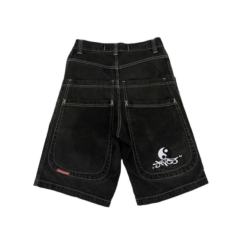 American Street Fashion Brand Men Letter Printed Denim Shorts Hip Hop Retro Y2K Men Loose Wide Leg Shorts streetwear pants