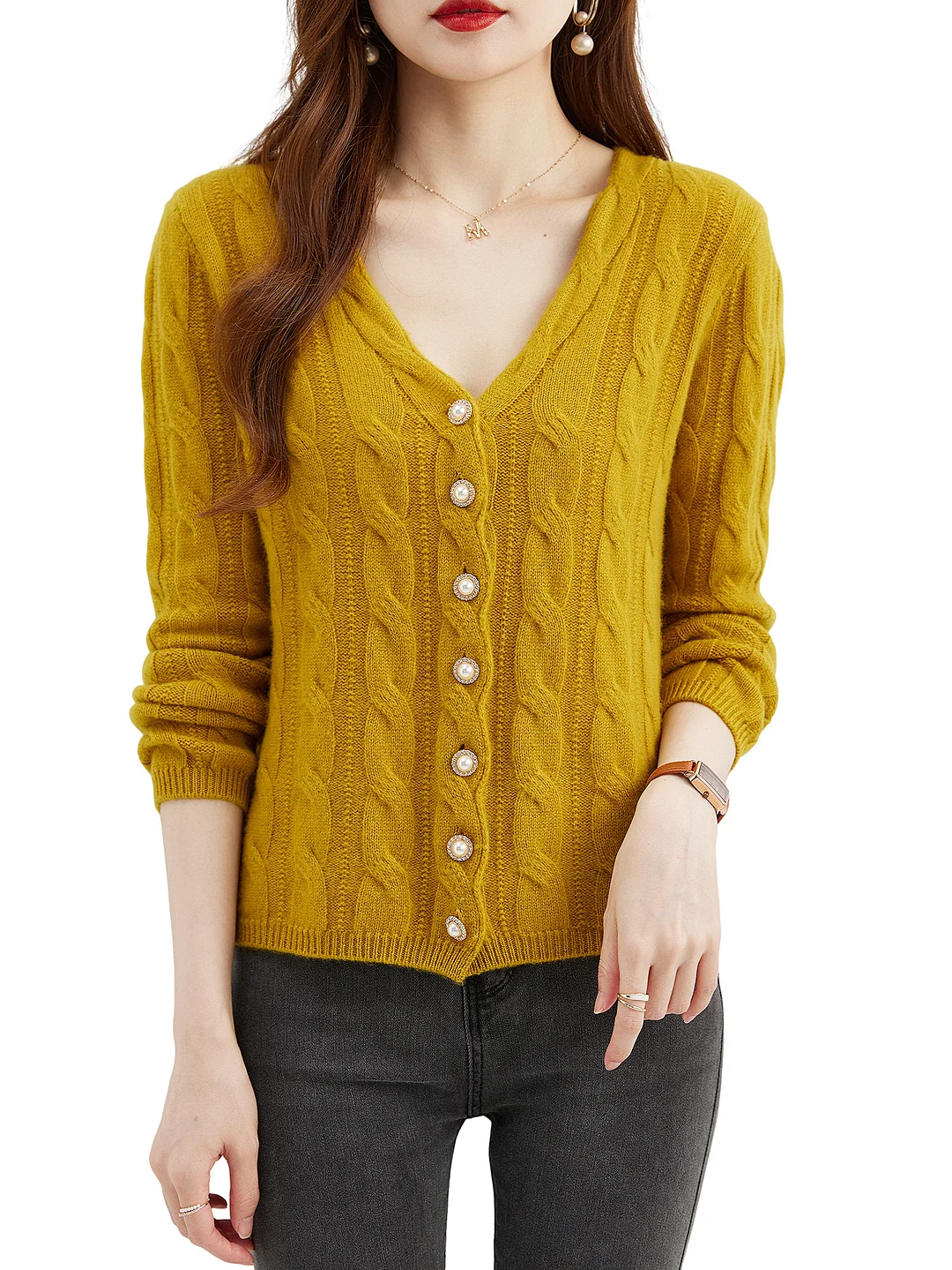 *Features: Fine 7 gauge fabric, medium thickness. Normal fit, long sleeve v neck and cable knit design. High elasticity, casual style. Lightweight, Warm and soft. This pure merino wool cardigan sweater is suitable for spring, fall and winter.