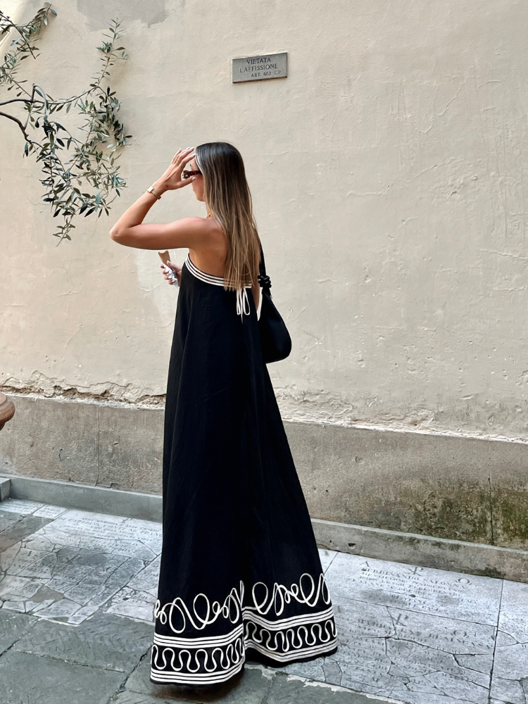 Fitvitalsupplement Sexy Off Shoulder Strapless Print Dress Women Elegant Backless Sleeveless Loose Hem Long Dresses Casual Vocation High Streetwear