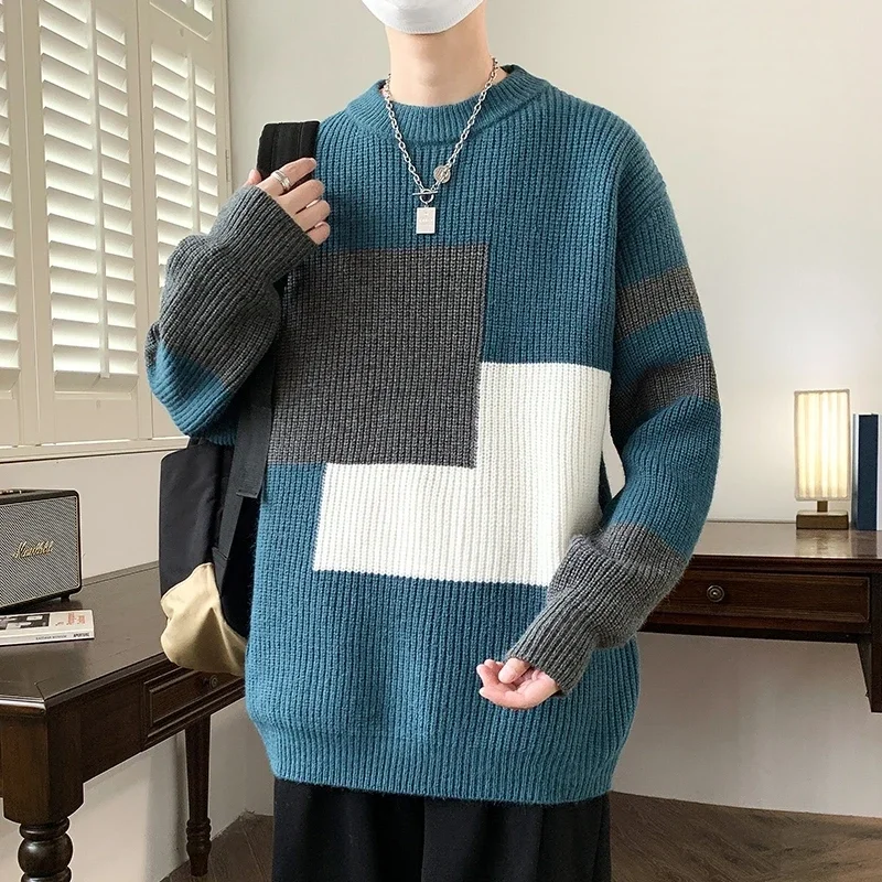 boyshy New Fall Winter Korean Style Mens Pullovers Sweaters High Quality Thick Warm Cashmere Sweater Men Luxury Patchwork Pull Homme