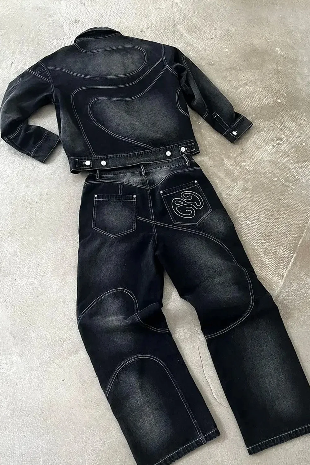 Streetwear Jeans Gothic Retro Casual Splicing Black Washed Straight Pants American Trend Hip Hop New High Waisted Wide Leg Jeans